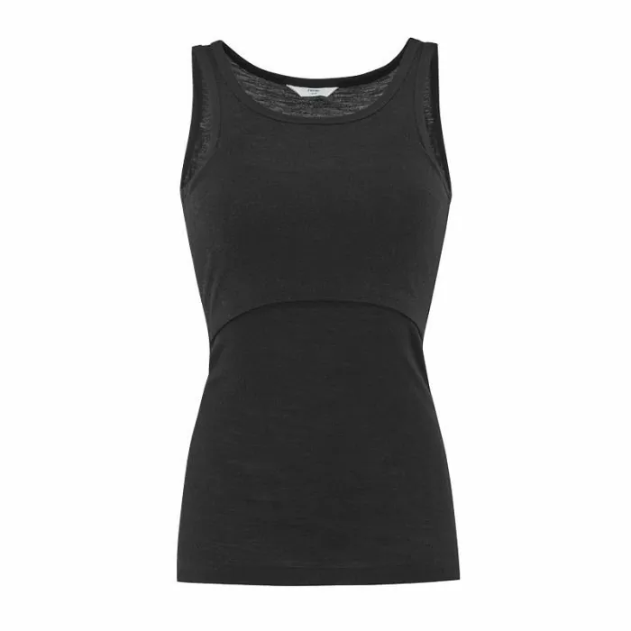Singlet i myk og lun ull med silke med dobbel overlapp i front for amming. Den har brede og komfortable stropper og er høy i nakken. På innerste lag er det en smal elastikk, som gjør at toppen lett kan dras ned ved behov. Ull isolerer både mot kulde og varme, og hvis den blir fuktig stjeler den ikke varme fra kroppen mens den tørker slik bomull gjør. Isteden transporterer den fuktigheten bort fra huden. Passform: Tettsittende og elastisk. NB! Liten i størrelsen, gå gjerne opp en størrelse.