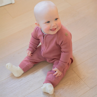 Babybukse i patentstrikk i 100% ubehandlet merinoull. Buksen er ribbestrikket i livet og nederst på beina. Beina kan lett brettes opp og justeres. Buksen har strikk i livet og snøre som kan justeres.