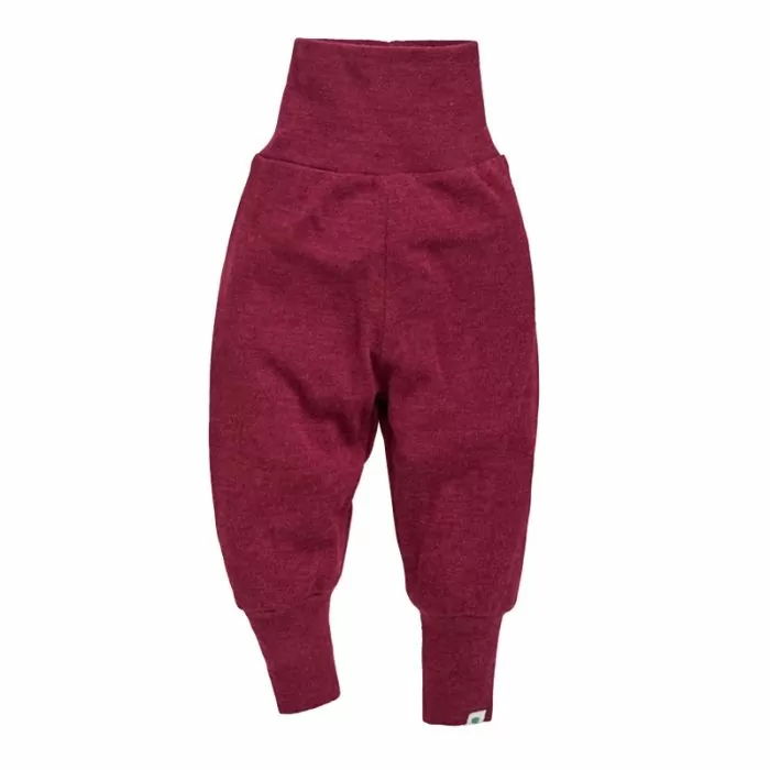 Denne lette babybuksen i ull med silke har ekstra bred og elastisk linning uten strikk i livet slik at den ikke strammer rundt babyens mage. Vi har laget buksen romslig og god i fasongen slik at barnet får full bevegelsesfrihet, og med lange vrangborder på beina som holder den oppe. Den kan brukes både med og uten oppbrett på vrangbordene, noe som gjør den fin å vokse i. Klær med lang brukstid er praktisk for barn som vokser. Ønsker du en smalere modell kan du se her på Ulltights i størrelse 56-98. og her for Ullbukse med knapper.