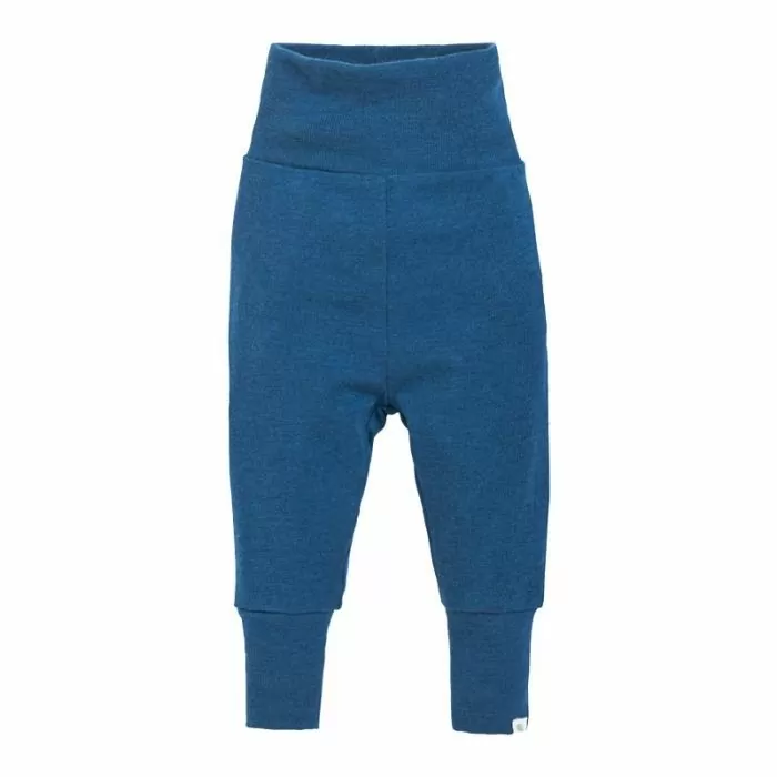 Denne lette babybuksen i ull med silke har ekstra bred og elastisk linning uten strikk i livet slik at den ikke strammer rundt babyens mage. Vi har laget buksen romslig og god i fasongen slik at barnet får full bevegelsesfrihet, og med lange vrangborder på beina som holder den oppe. Den kan brukes både med og uten oppbrett på vrangbordene, noe som gjør den fin å vokse i. Klær med lang brukstid er praktisk for barn som vokser. Ønsker du en smalere modell kan du se her på Ulltights i størrelse 56-98. og her for Ullbukse med knapper.