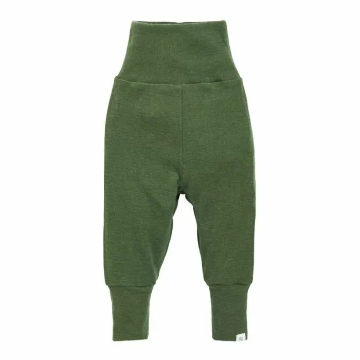 Denne lette babybuksen i ull med silke har ekstra bred og elastisk linning uten strikk i livet slik at den ikke strammer rundt babyens mage. Vi har laget buksen romslig og god i fasongen slik at barnet får full bevegelsesfrihet, og med lange vrangborder på beina som holder den oppe. Den kan brukes både med og uten oppbrett på vrangbordene, noe som gjør den fin å vokse i. Klær med lang brukstid er praktisk for barn som vokser. Ønsker du en smalere modell kan du se her på Ulltights i størrelse 56-98. og her for Ullbukse med knapper.