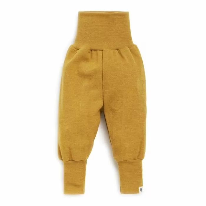 Denne lette babybuksen i ull med silke har ekstra bred og elastisk linning uten strikk i livet slik at den ikke strammer rundt babyens mage. Vi har laget buksen romslig og god i fasongen slik at barnet får full bevegelsesfrihet, og med lange vrangborder på beina som holder den oppe. Den kan brukes både med og uten oppbrett på vrangbordene, noe som gjør den fin å vokse i. Klær med lang brukstid er praktisk for barn som vokser. Ønsker du en smalere modell kan du se her på Ulltights i størrelse 56-98. og her for Ullbukse med knapper.