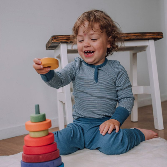 Ullfrottebuksen er et supert mellomlag i barnehagen, god inni både regntøy og utedress. Den er myk og elastisk å bevege seg i, og er super som vanlig bukse. Fargen passer til flere av ullbodyene våre, hvis du ønsker et sett.