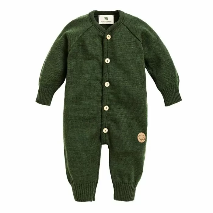 Glattstrikket myk og god dress som kan brukes både som mellomlag, lekedress eller til barnet sin sovestund. Raglanermer og åpning med knapper av tre i front gjør den lett å kle av og på.