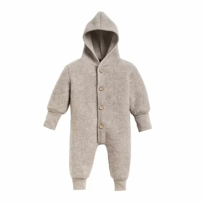 Den kjente og kjære ullfleecedressen med hette og treknapper. Varm og god dress som kan kombineres med vindtett eller vanntett på kalde eller ruskete dager. Super som et varmt lag til soving i vogn. Ulldressen er lett å ta av og på, og luner godt i bilstolen ut og inn av bilen. Størrelse 80/86 finnes også i varianten uten hette, med glidelås for enklere påkledning i barnehagen og for å unngå hette når den brukes som mellomlag.