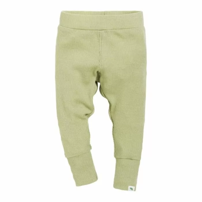 Ribbestrikket babybukse i ull med silke