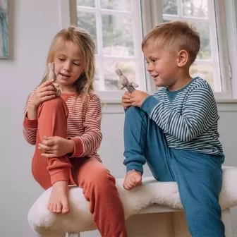 - Ull med silke er pustende og temperaturregulerende. Transporterer fuktighet og svette bort fra huden, luner når det er kaldt og svaler når det er varmt. Den beholder evnen til å varme også når den er våt slik at barnet ikke blir klamt eller vått og deretter kaldt.