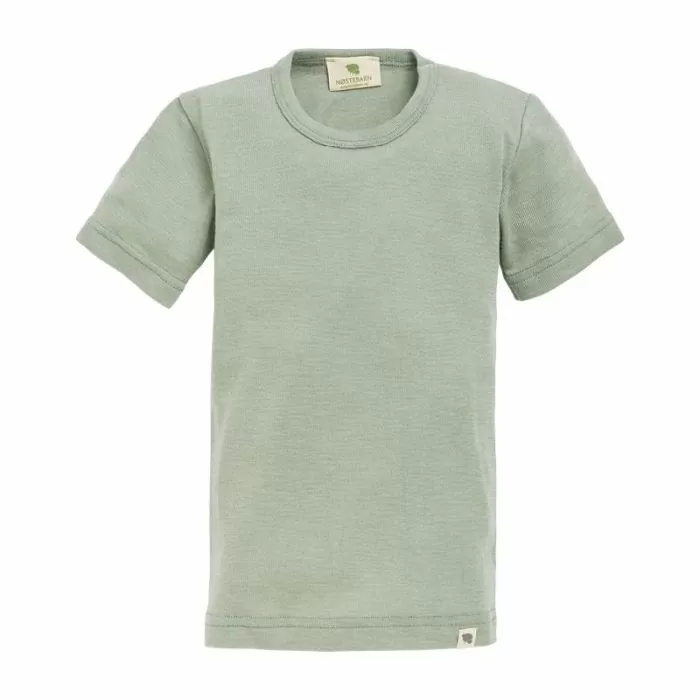 - T-skjorte til barn med kort erm i ull-silkeblanding.