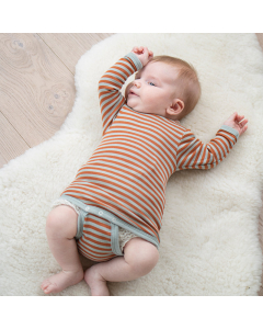 En langermet body kan både brukes innerst eller som topp alene. Singlet er også supre å bruke innerst hvis du skal ha annet utenpå. En del foretrekker ullsinglet og langermet ulltrøye istedenfor langermet body. Bodyen holder da det hele sammen og trøyen kan lett skiftes eller tas av hvis barnet blir for varmt eller det kommer søl på den. Singletbody er også super under kjole eller annet pentøy. Helt nyfødte kan gjerne bruke beskyttende lange ermer også på de skikkelig varme dagene, men senere kan en ullsinglet være super om sommeren. Det er på mage, bryst og rygg vi svetter mest, og det er derfor der det er ekstra viktig med ull eller ull med silke, helst året rundt. En singletbody i ull med silke, og senere en ullsinglet, er super i sommervarmen fordi de hindrer at barnet blir klamt.