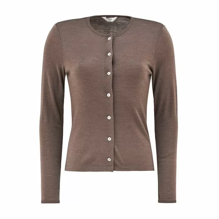 - Tynn damecardigan i ull med silke.