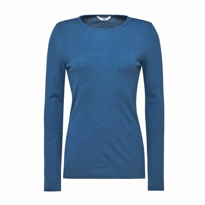 Langermet ulltrøye dame, ull med silke - Dongeriblå