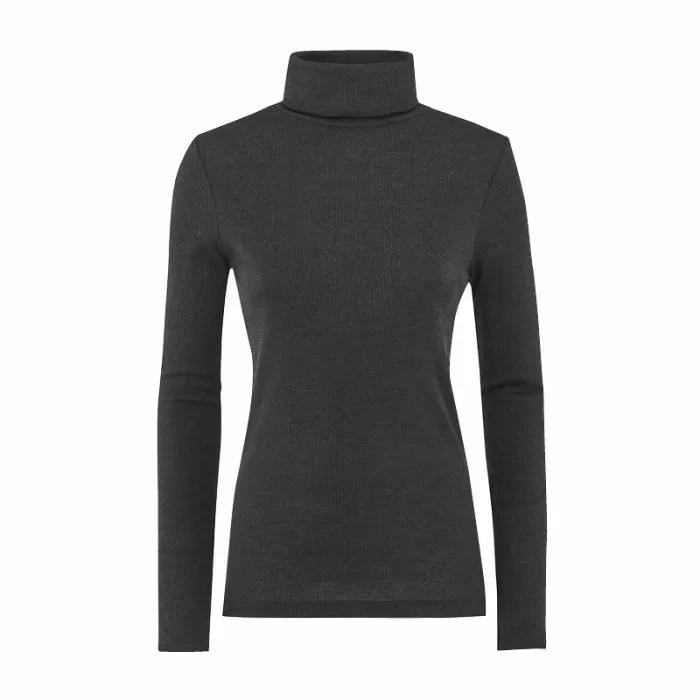 - Myk og elastisk trøye i lekkert, finribbet kvalitet. Høy hals som brettes én gang. Halvlange ermebråt/kanter.