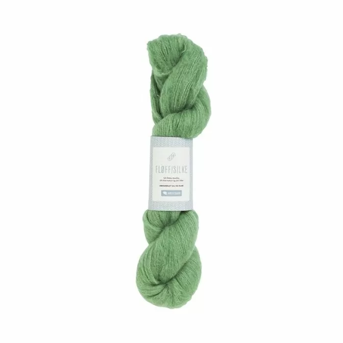 Fløffisilke er en nydelig blanding av alpakka, mohair og silke som gjør den til en perfekt følgetråd - og alene. Utrolig myk og lett, må oppleves! En Fløffisilke som følgetråd kan legges til i de fleste oppskriftene vi har for et fløffete, litt tykkere og ekstra mykt resultat. For oppskrifter i enkel Merinoull eller Silkeull på små pinner (2-3mm) kan Fløffisilken i stedet erstatte Merino- eller Silkeullen for et mer fløffete plagg.