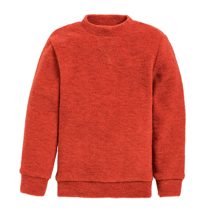 Mellomtykk, myk collegegenser i snudd ullfrotté (den glatte siden vender inn). Lun og lett ullgenser, super som mellomlag.