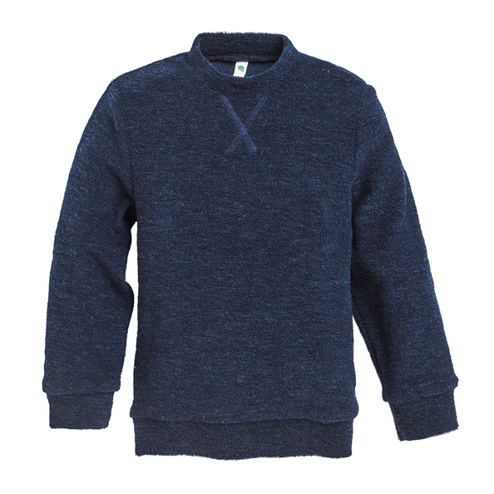 Mellomtykk, myk collegegenser i snudd ullfrotté (den glatte siden vender inn). Lun og lett ullgenser, super som mellomlag.
