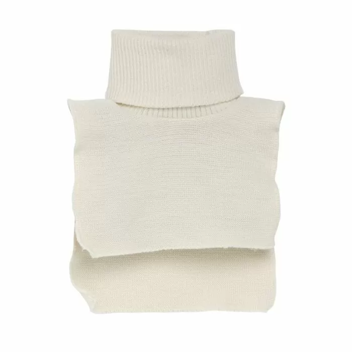 - Ribbestrikket ullhals med rillestrikk på front og bakstykke.