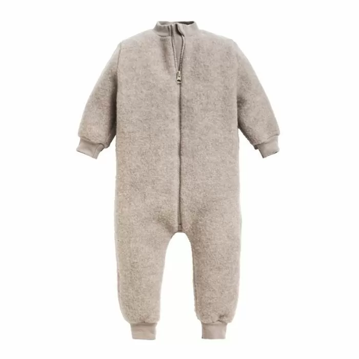 Tykk og lett ulldress uten hette. Ullfleecedressen har glidelås for enklere påkledning i barnehagen og for å unngå hette når den brukes som mellomlag. Varm og god dress som kan kombineres med vindtett eller vanntett på kalde eller ruskete dager. Super som et varmt lag til soving i vogn. Ulldressen er lett å ta av og på, og luner godt i bilstolen; ut og inn av bilen. Størrelse 80/86 finnes også i varianten med hette og treknapper.