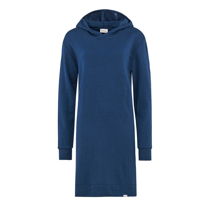 Kul ullkjole i ledig fasong og med hette. Like fin på jobben som på hyttetur. 100% økologisk, ubehandlet merinoull.