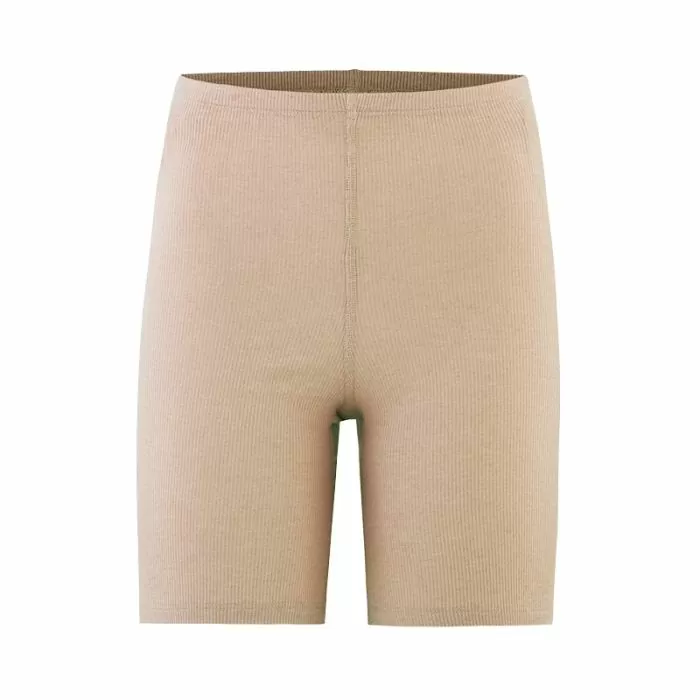 - Bukse med korte ben i tynn ribbet finstrikk.