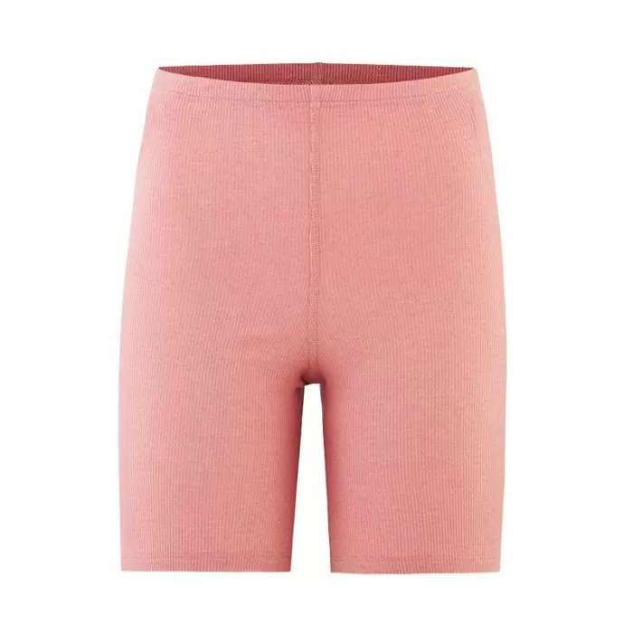 - Bukse med korte ben i tynn ribbet finstrikk.