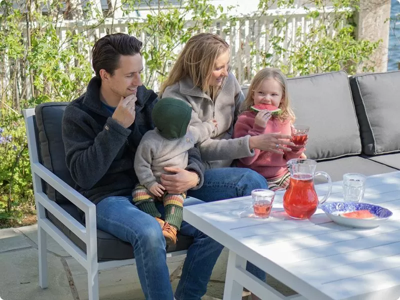 Ingen grunn for å gå inn selv om solen går ned når du er kledd i varm, ubehandlet ull! Ullfleecen vår er en av våre favoritter på sommeren, nettopp for å forlenge sommerkveldene når kulden kryper innpå.