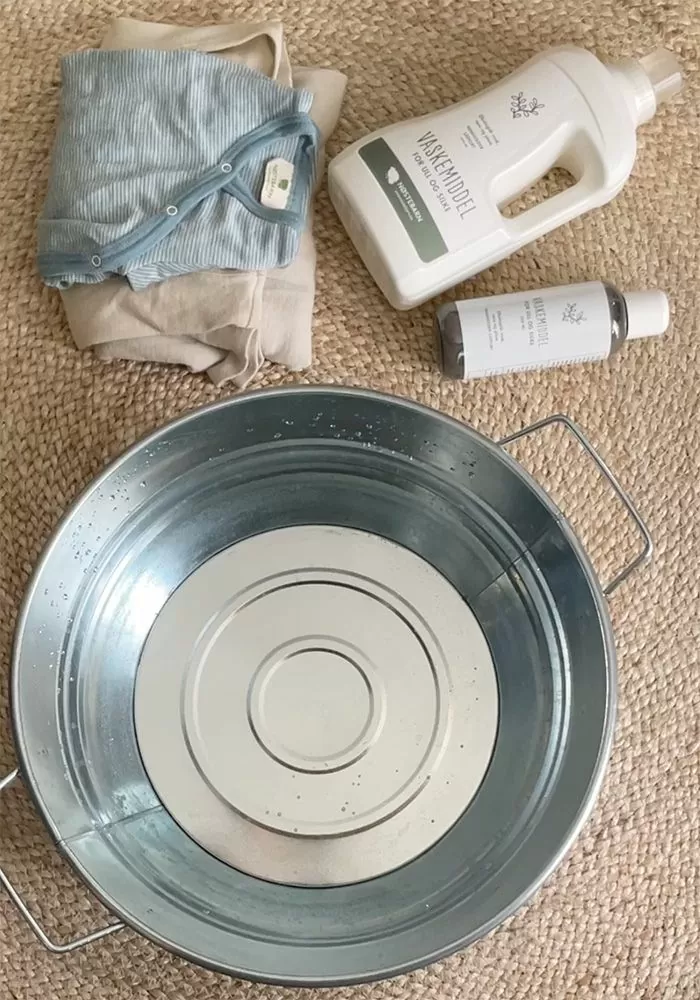 1. Tapp vann (ca. 30℃) i vasken eller i en vaskebøtte.