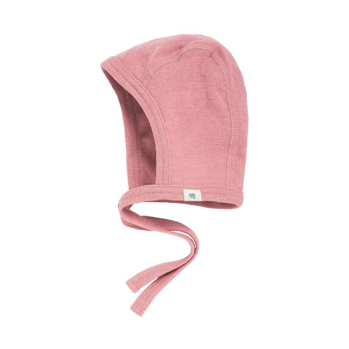 - Babylue med knytebånd i ull med silke.