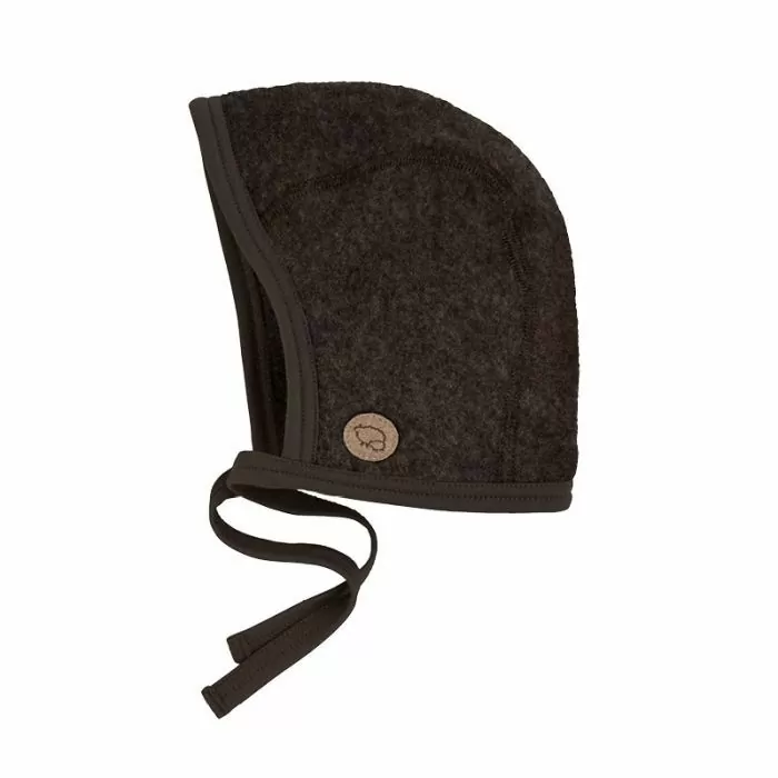 Myk og varm babylue i børstet ull. Hjelm-modell med flate sømmer og knyting under halsen. Dette er den tykkeste av hjelmluene våre. Den er god og varm men ikke vindtett. Skal luen brukes uten annen beskyttelse for vær og vind (f.eks nedi vognen eller med hette utenpå) anbefaler vi ullfleeceluene våre med vindbeskyttelse. Eller vindluen vår med ullfôr.