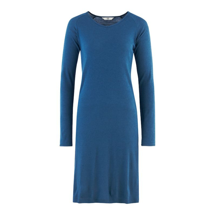 Nattkjole i ull med silke, litt a-fasong - Dongeriblå