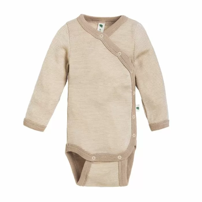 - Det elastiske og myke ull/silke stoffet gjør bodyen god å vokse i og omslagsåpningen gjør den lett å kle på de aller minste uten å måtte tre den over hodet.