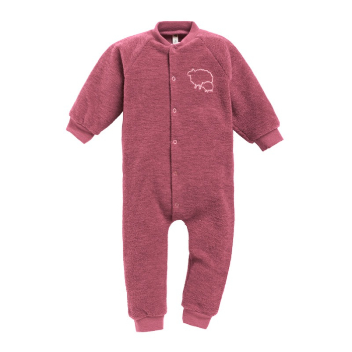• Ullpyjamasen har trykknapper foran og brodert sau på brystet.