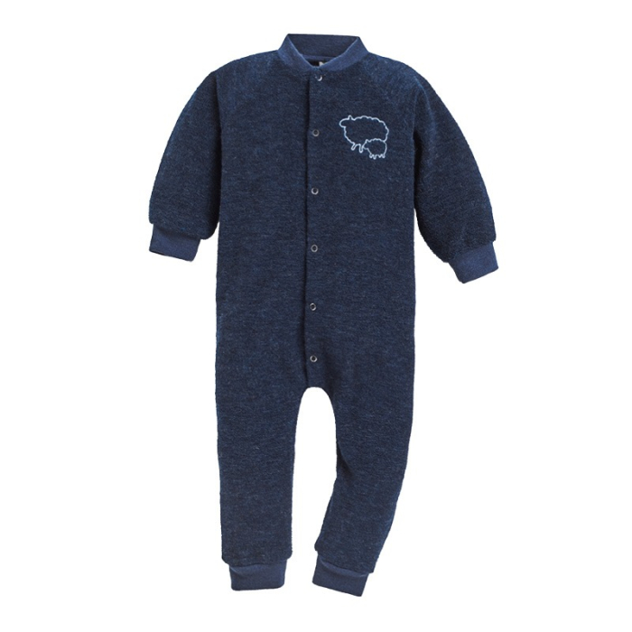 • Ullpyjamasen har trykknapper foran og brodert sau på brystet.