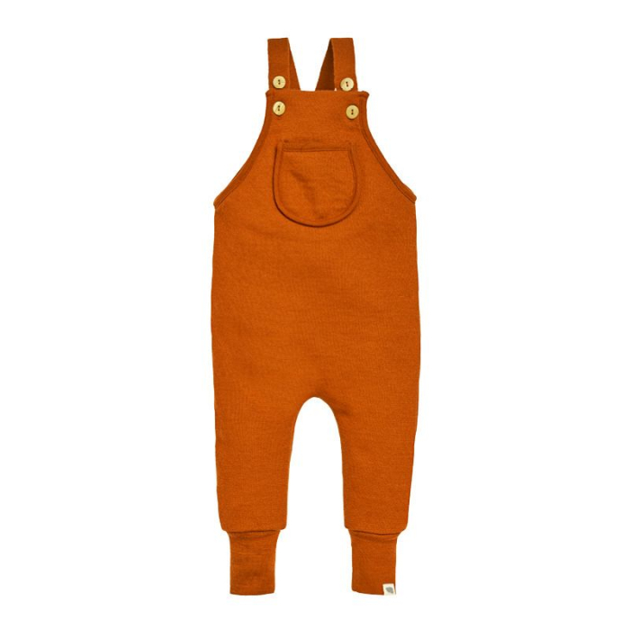 Selebukse i 100% økologisk og ubehandlet merinoull i med frotte på innsiden. Denne buksen er god å vokse i, da den kan brettes i beina og justeres med knapper på selene. Dekorativ lomme i front.