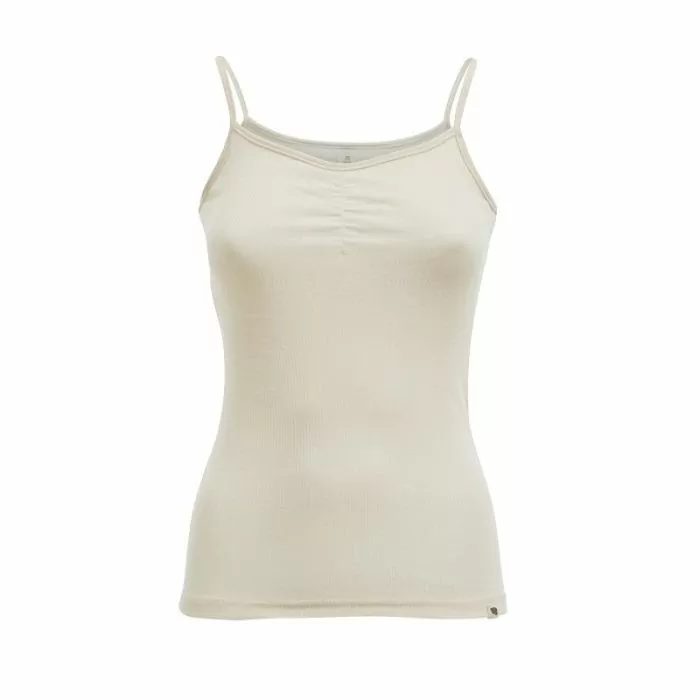 Singlet i damemodell, med stropper. Brukes alene eller som innerste lag, singleten er like god sommer som vinter. Det er på mage og rygg vi lettest blir klamme og kalde, og en singlet i myk ull med silke gir ekstra velvære, også under finstas og jobbklær. Denne modellen er den korteste singleten vår.