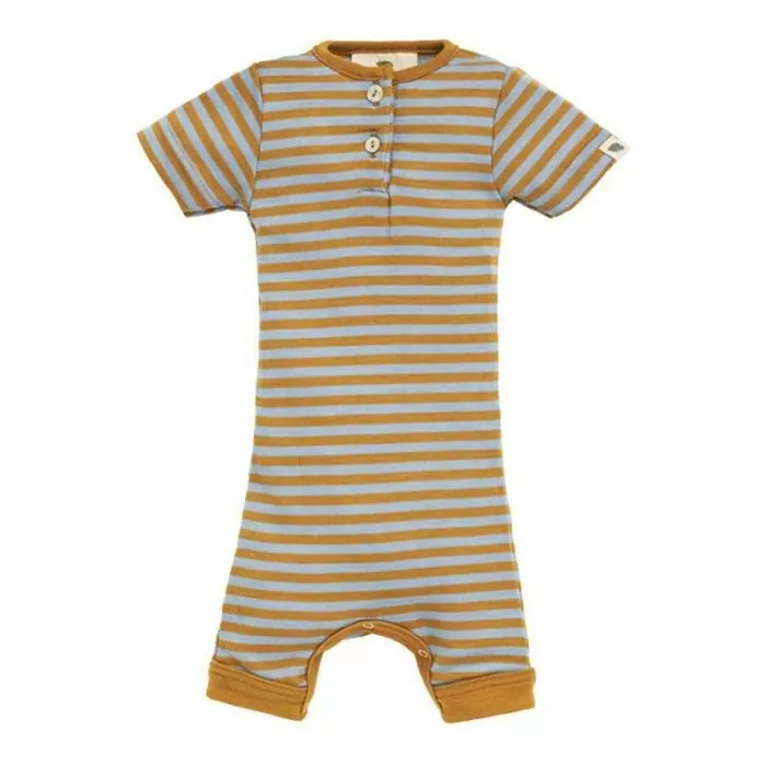 - Perlemorsknapper i halsåpningen og trykknapp-åpning i skrittet gjør påkledningen og bleieskiftet ekstra enkelt.