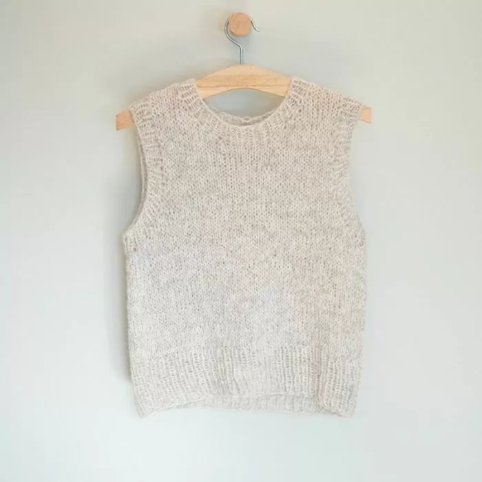 Teknikker: Glattstrikk, Nedenfra og opp, Skuldersøm (usynlig søm), Plukke opp masker