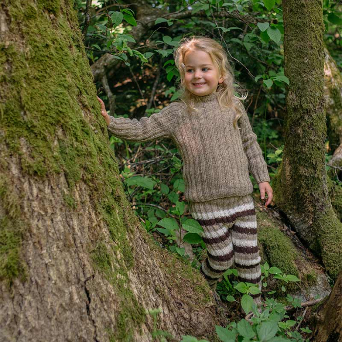Strikkeoppskrift på et mykt og ekstra elastisk sett med ullbukse og ullgenser i ribbestrikk. Supert som mellomlag, og godt å ta utenpå på vei til og fra. Blir ikke kald selv med en liten regnskur eller ett hopp i en dam. Velg om du vil strikke settet i en farge eller striper. Perfekt som restegarnsprosjekt!
