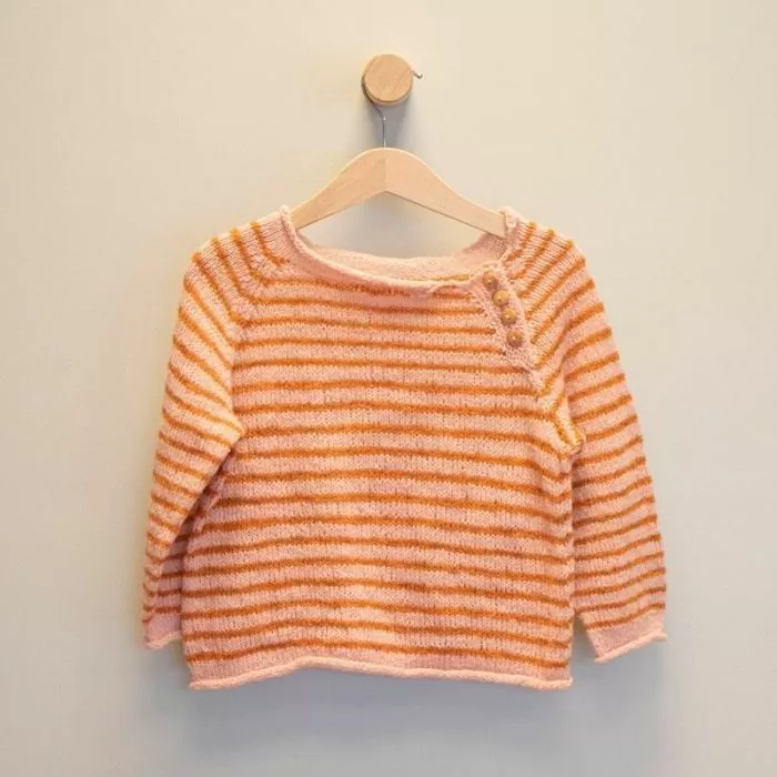 Teknikker: Glattstrikk med striper, Nedenfra og opp, Raglanfelling