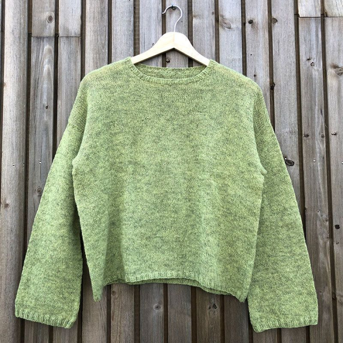 Strikkeoppskrift på en Lett og luftig genser i boxy/løs fasong. Kort og litt vid i bolen og rette ermer. Perfekt til sommerbruk! Genseren strikkes nedenfra og opp i glattstrikk. Etter felling til ermehull, strikkes forstykket og bakstykket hver for seg før disse sys sammen i toppen. Ermene strikkes ved at man plukker opp masker i ermeåpningene. Til slutt strikkes halskanten.