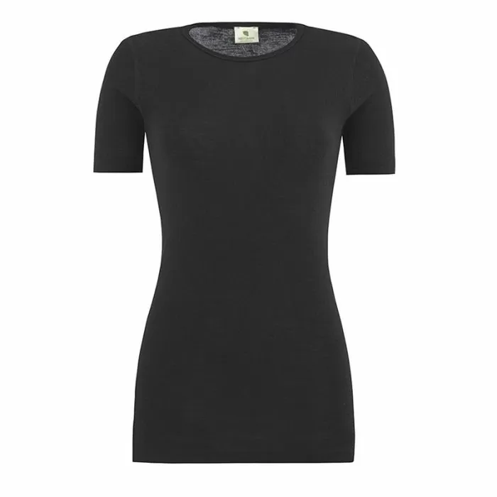 - Lett og elastisk t-skjorte i ull med silke som kjennes ekstra delikat og mykt mot huden. Tettsittende modell.