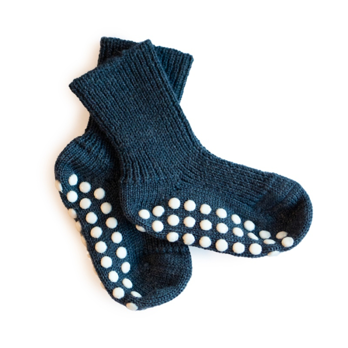 - Mellomtykk strikket kvalitet med silikon under såle for antiskli effekt.
