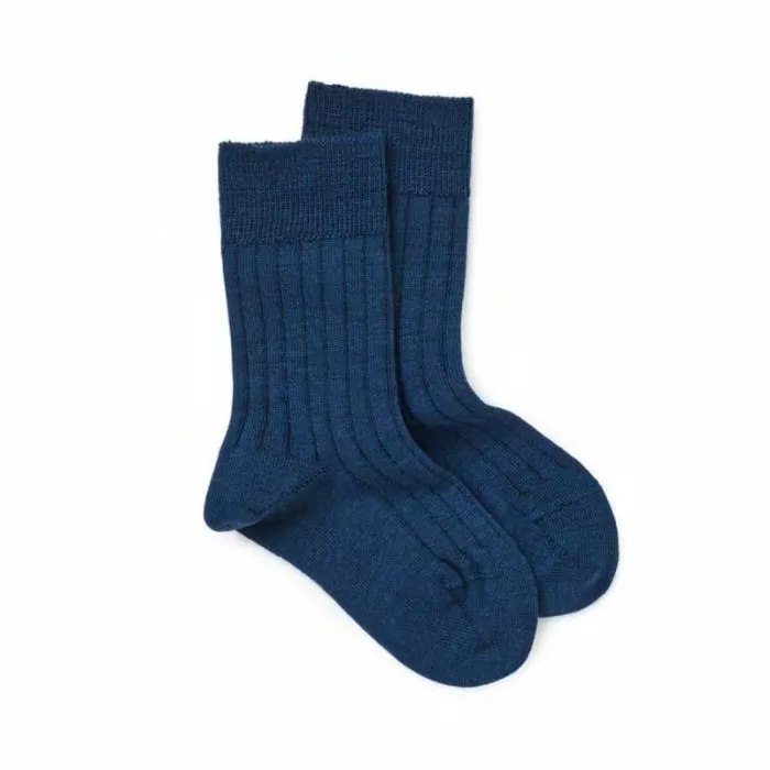 Tynne ullsokker i ribb-kvalitet for barn - Marineblå