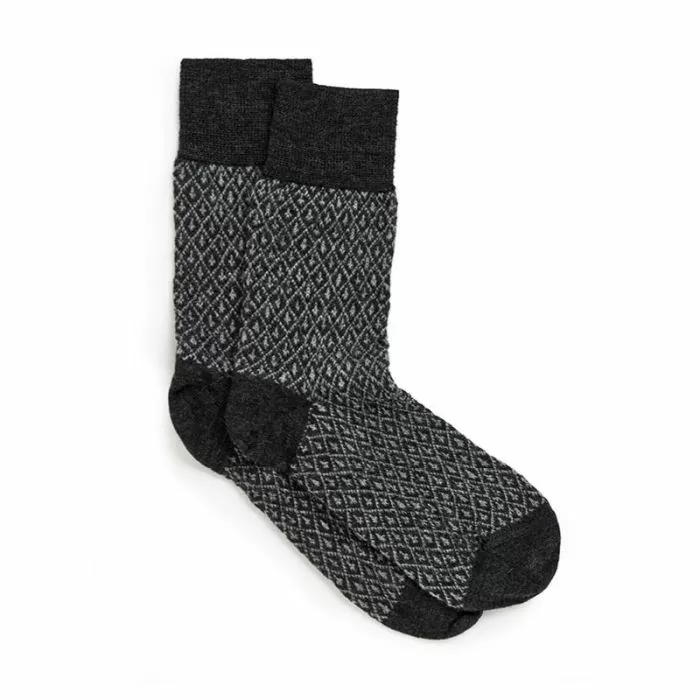 Tynne ullsokker med mønster. 100% ull - Koksgrå/grå