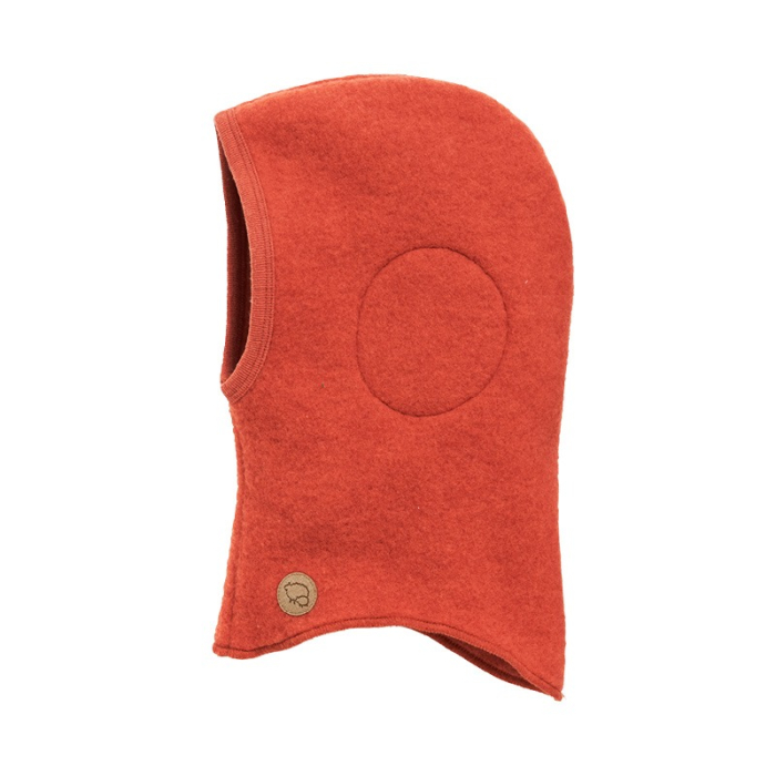 100% økologisk, ubehandlet merinoull (ullfleece). Kant rundt ansiktet i 70% økologisk ubehandlet merinoull, 30% silke. Vindbeskyttelse over ørene i 100% bomull.