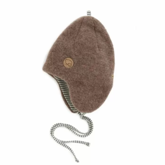 Ullfleece lue m vindbeskytter, barn - Valnøtt