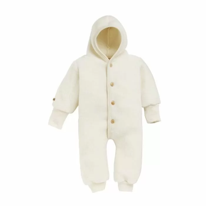 Den kjente og kjære ullfleecedressen med hette og treknapper. Varm og god dress som kan kombineres med vindtett eller vanntett på kalde eller ruskete dager. Super som et varmt lag til soving i vogn. Ulldressen er lett å ta av og på, og luner godt i bilstolen ut og inn av bilen. Størrelse 80/86 finnes også i varianten uten hette, med glidelås for enklere påkledning i barnehagen og for å unngå hette når den brukes som mellomlag.