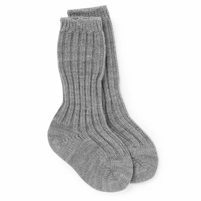Varme knestrømper i rillestrikket ull. Koselig ribbestrikk som holder små føtter varme. Puster slik at føttene ikke blir klamme.