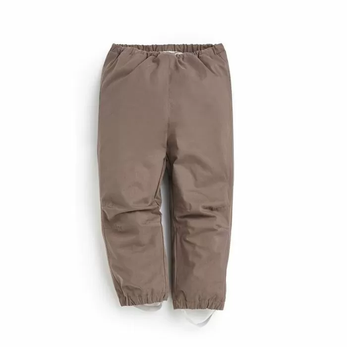 Overtrekksbuksen beskytter klærne, og holder samtidig kald vind ute. Vi har valgt å beholde vindbuksen 100% naturlig, og dermed uten impregnering. Den er derfor ikke vanntett eller vannavvisende, men i kombinasjon med isolerende ull og lag-på-lag-prinsippet, gjør bomullen at det ikke blir klamt og ubehagelig når barna er i vekslende aktivitet. Rene naturmaterialer avgir heller ikke mikroplast og er ekstra myk (og stille) å bevege seg i. Så lenge barnet har ullbukse inni, kan buksen godt bli litt våt uten at det blir kaldt eller ubehagelig for barnet. Buksen kan impregneres hvis det er ønskelig. Ønsker dere en naturlig impregnering er bivoks bra. Det er litt arbeid å smøre utover voksen, men resultatet blir bra.